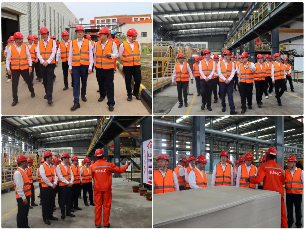 Zhou Yuxian and his delegation visited Sinoma-EC(Nigeria) office building, calcium silicate board production workshop, raw material warehouse, etc., and learned about CNBM Nigeria's corporate culture, production process and series of products. Mr. Zhang Hui, Chairman ofSinoma-EC(Nigeria), made a detailed report on the current production and operation, marketing, cost control, problems and future targets and measures.